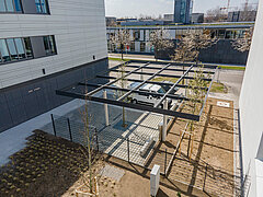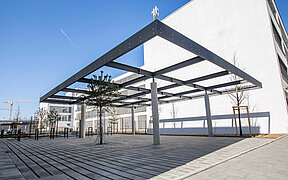 Unser Auftrag: Herstellung, Lieferung und Montage von mehreren Stahlträgersystemen in Form von Pergolen mit Größen von bis zu 13,50 m x 10,80 m. Weiterhin erstellten wir die W+M Planung und die Anschluss- bzw. Knotenstatik. Korrosionsschutz erfolgte durch Beschichtung auf Basis der DIN EN ISO 12944 für atmosphärische Umgebungsbedingungen.