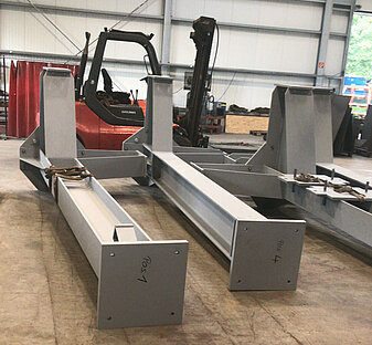 Das exakt nach Vorgabe gefertigte Kranportal hat eine Durchfahrtshöhe von 4,00 m und lässt sich in zwei Konfigurationen aufbauen – mit 4,60 m x 4,60 m oder 6,00 m x 6,00 m. Das von BKL abgerufene Kran Leistungsspektrum beinhaltete auch die Statik und Werkstattplanung. Alles aus einer Hand!