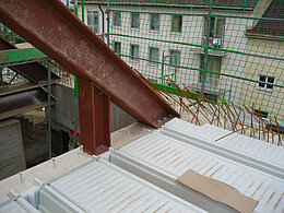 Der Zuschlag für die umfassenden Stahlbauarbeiten einschließlich Montage ging an die Spezialisten von MTS. Als solche errichteten wir nicht nur alle neu zu errichtenden Stahlbauteile, sondern auch eine Vielzahl von Abfang- bzw. Abstützmaßnahmen in den jeweiligen Bauzuständen.