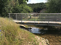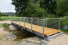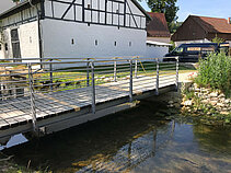 Um Einheimischen und Touristen einen guten Zugang zu ermöglichen, errichtete MTS zwei Fußgängerbrücken über den Altarm und den Werkkanal des Flüsschens Anlauter. Beide Bauwerke mit Spannweiten von acht und zehn Metern bestehen aus einem überhöhten Stahlprofiltragwerk mit Edelstahlgeländer. Beide Brücken wurden inklusive Massiveichendielen komplett von MTS gefertigt, vormontiert und in einem Hub auf der Baustelle eingehoben.