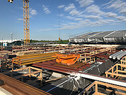 Im Zuge der Dachsanierung wurde die sekundäre Tragkonstruktion der Hallen komplett abgebrochen. Um die Struktur fachmännisch auszusteifen, baute die MTS in vorgegebenen Abschnitten horizontale und vertikale Verbände in Stahlbauweise ein.