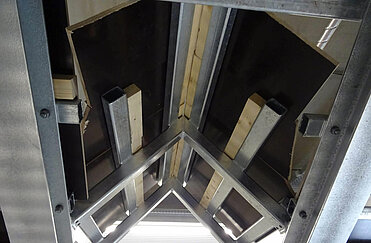 Die Übungsdächer erstellte das MTS-Team übrigens komplett, einschließlich Stehfalzeindeckung, Dachlattung aus Stahl, Dachgaube, Dachfenster und abnehmbarer Schindeleindeckung. Die Übungsbalkone wurden einschließlich Geländer geliefert und montiert. Neben der Grubeneinfassung wurde MTS auch mit den notwendigen Schlosserarbeiten betraut – einschließlich Geländern, Treppen, Gitterrosten, Steigleitern, Anschlagpunkten und Baumhalterungen.