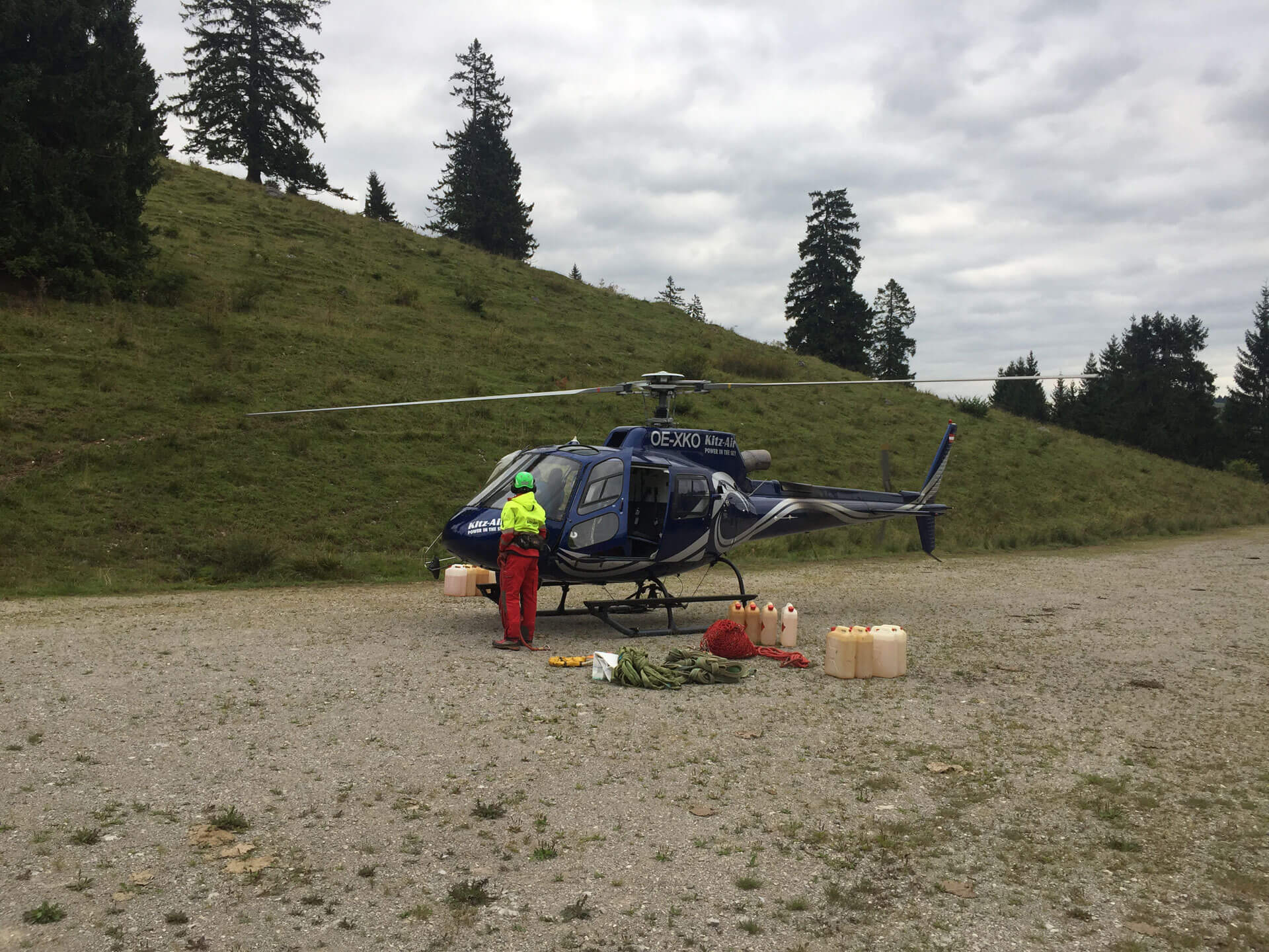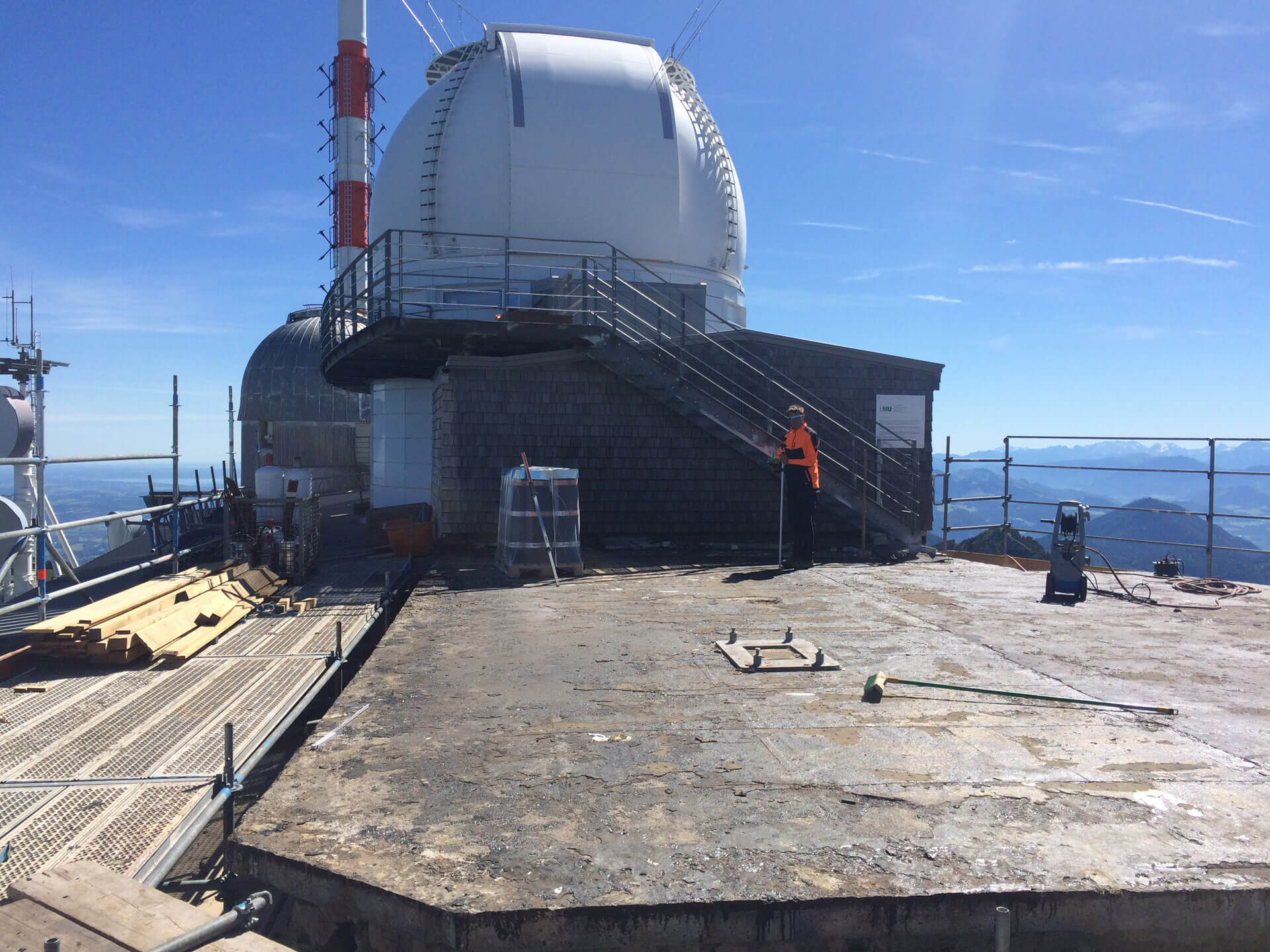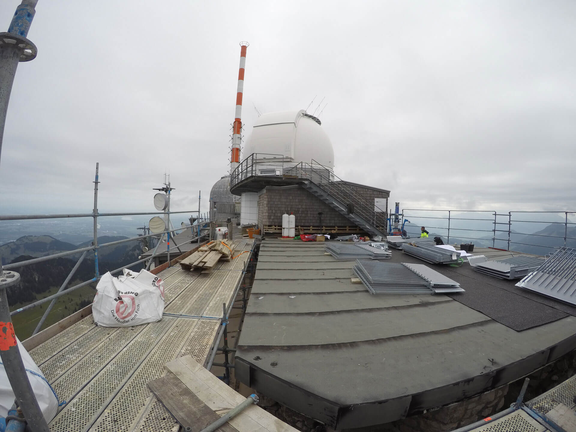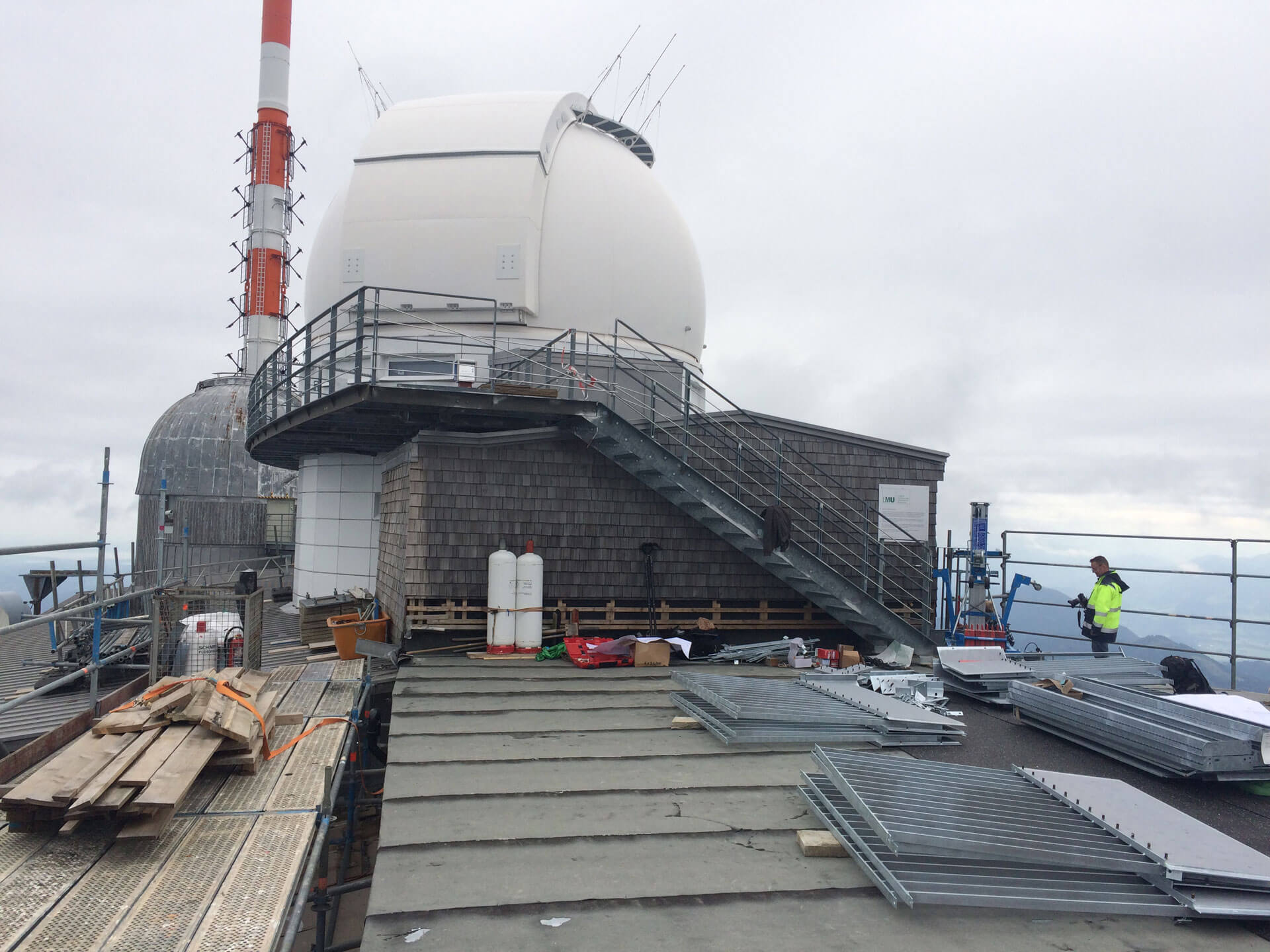 Für die Sanierung der beliebten Aussichtsplattform lieferte MTS per Helikopter vorgefertigte Geländer-Elemente mit 33 lfm, eine Treppe sowie Unterkonstruktionen für ein Fernrohr und die Skulptur „Das Liebespaar vom Wendelstein“.